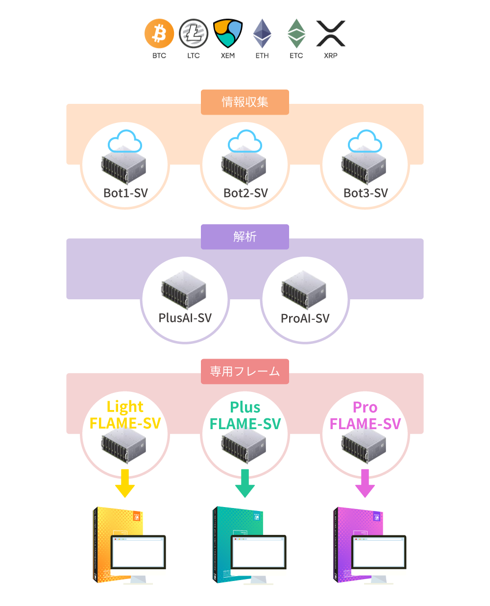 主要な6銘柄対応 BTC/LTC/XEM/ETH/ETC/XRP